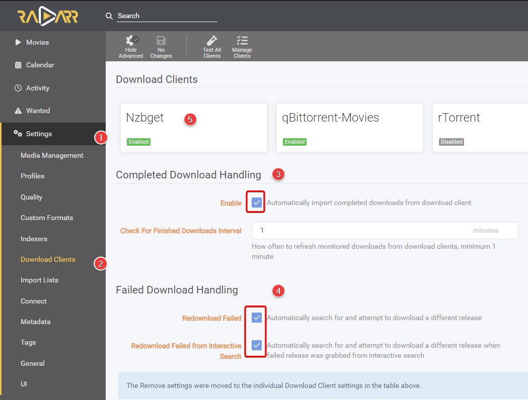 In step 5, select NZBGet, scroll to the bottom of the new window where it says Completed Download Handling, and check both boxes.